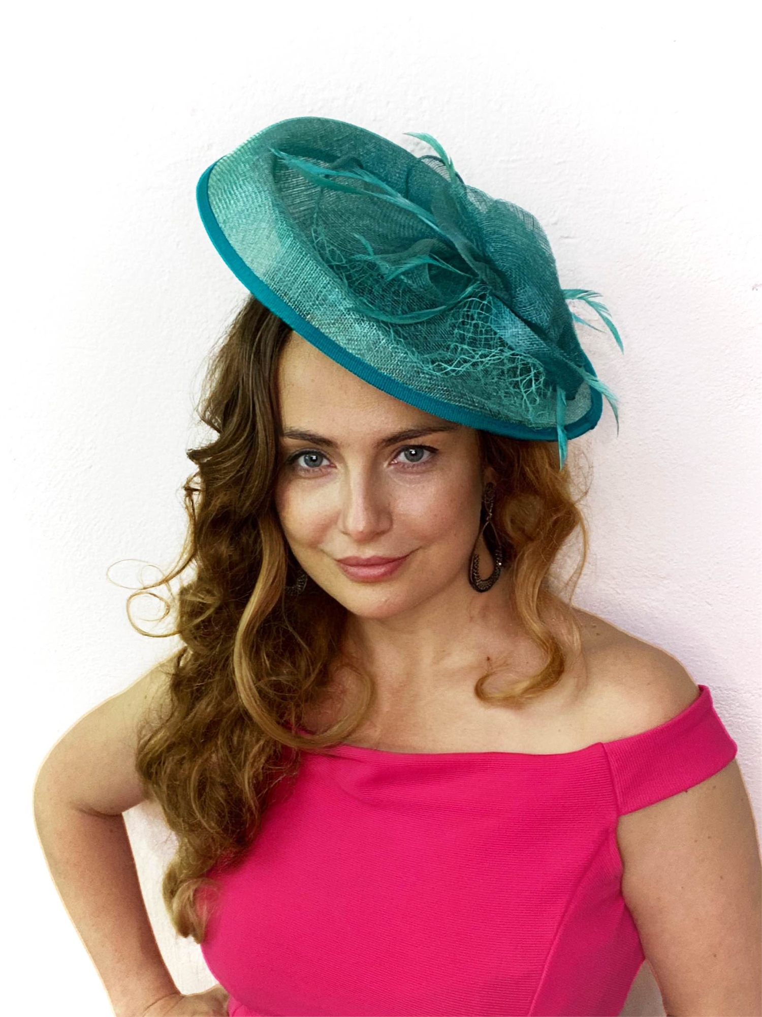 Шляпка на заколке Диана из синамей. Бирюза