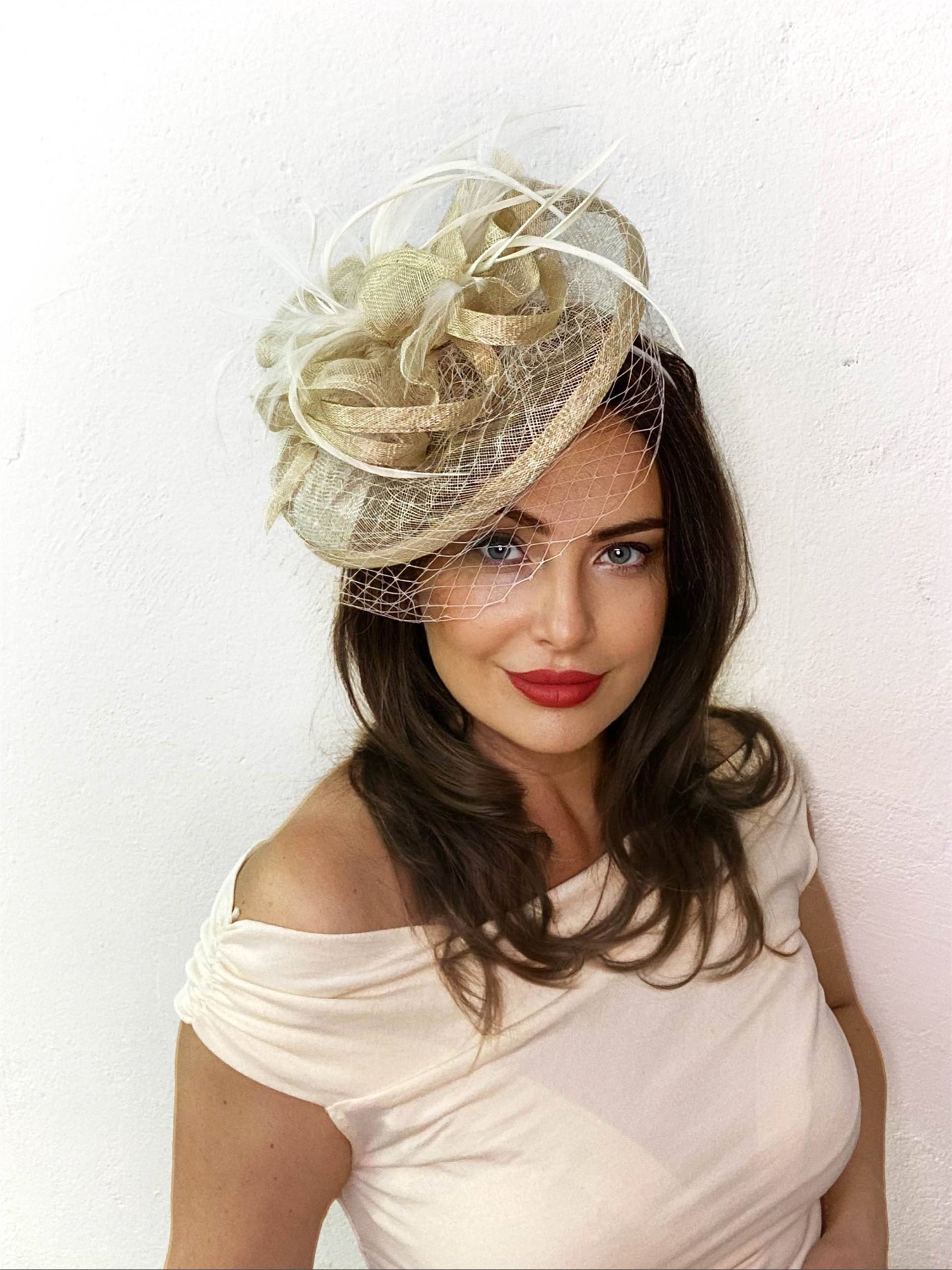 3505. Шляпка из синамей с вуалью Моника. Айвори